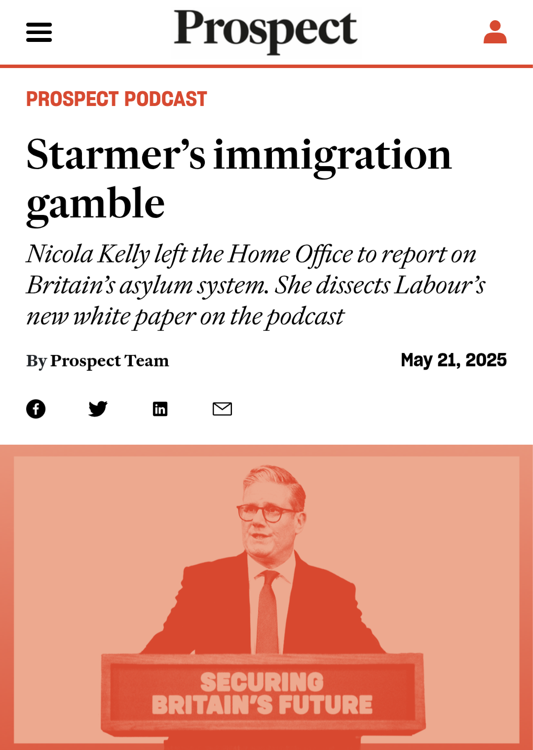 Prospect Magazine podcast: ‘Starmer’s immigration gamble’, May 2025